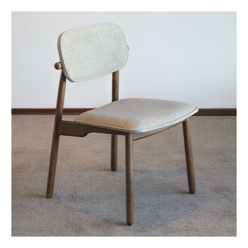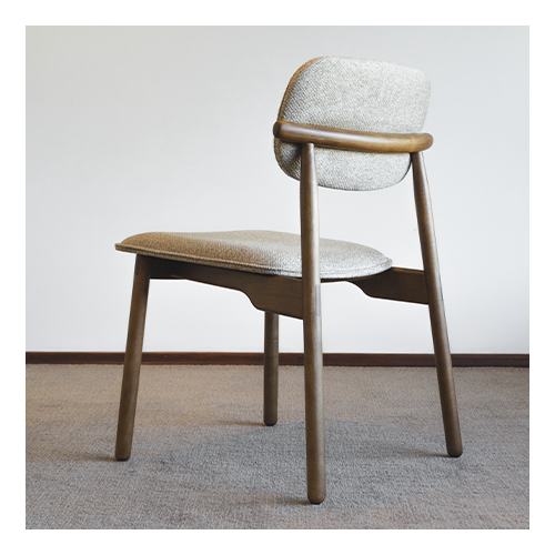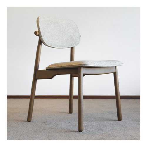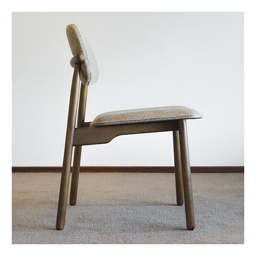 Cadeira Carioca sem braço – Estrutura em madeira maciça cor castanho, assento e encosto revestidos em tecido Quaker coleção The Sofa. Medidas (cm) – Altura: 82 / Largura: 55 / Profundidade: 58