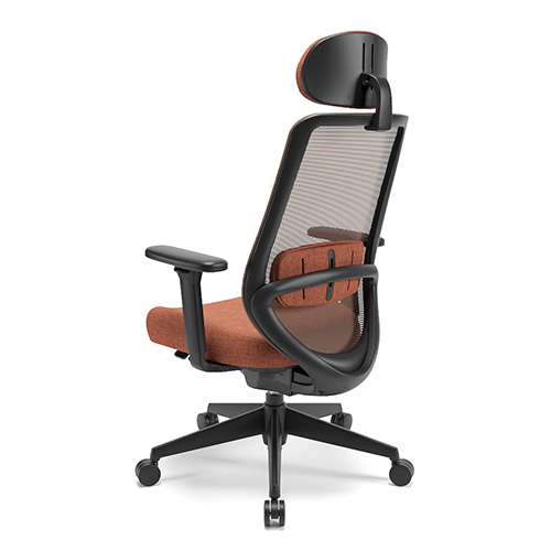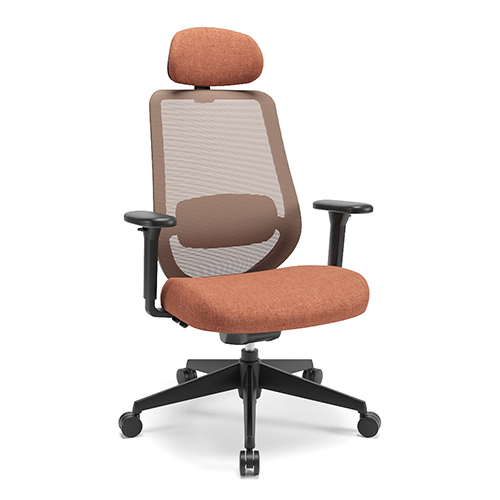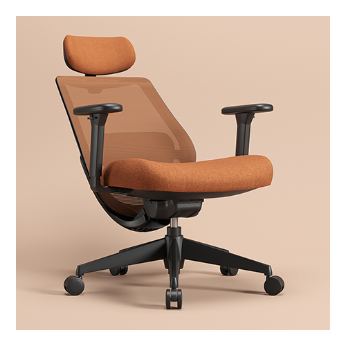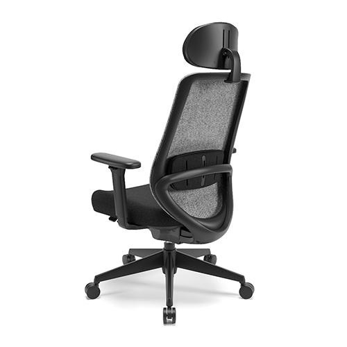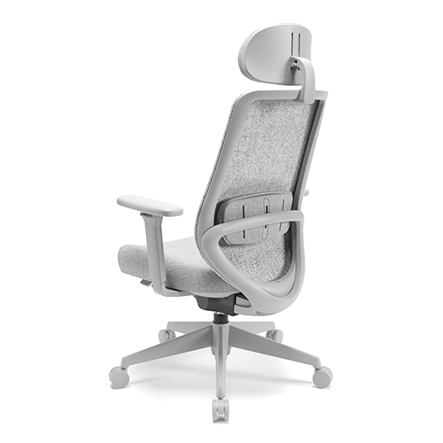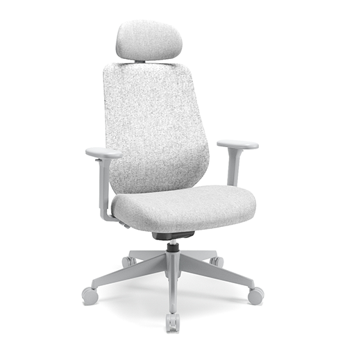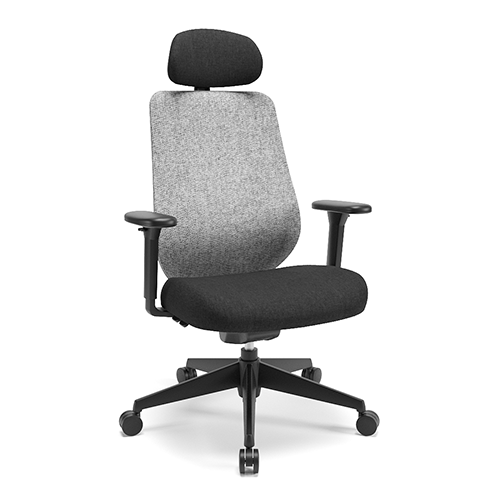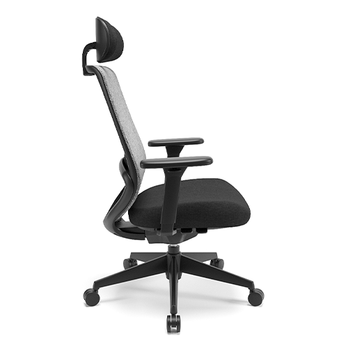 Apoio Lombar estofado e com ajuste de altura. Tela no encosto. Apoio de cabeça tapeçado com regulagem de altura e inclinação. Botões de ajustes integrados ao assento, de fácil acionamento. Base injetada. Apoio de braço 3D.