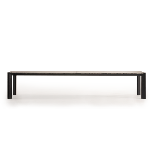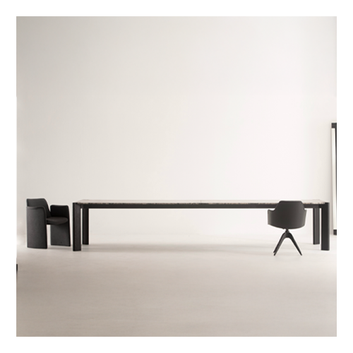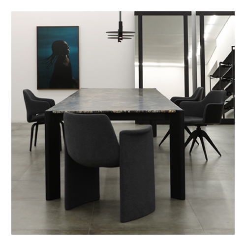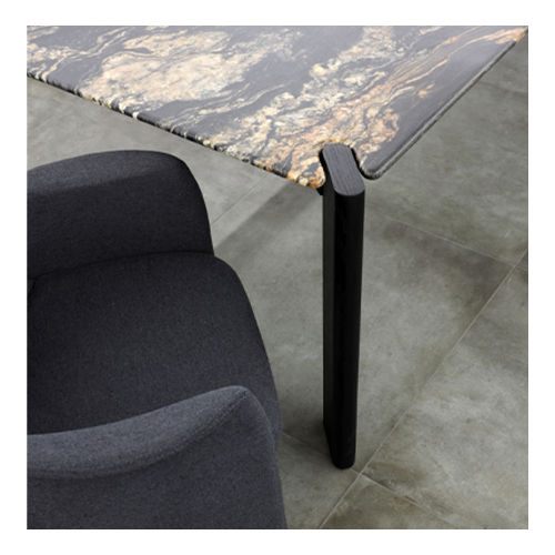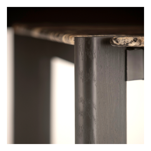 Estrutura em aço pintado ou laminado. Tampo laminado ou mármore.