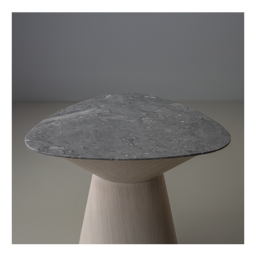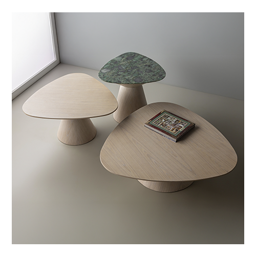 Mesa lateral em madeira. Tampo em lâmina de madeira ou laca. Opções de acabamento em lâmina, laca, vidro pintado, pedra reconstituída, mármore/granito e quartzito.