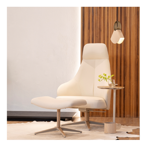 Poltrona giratória, base em alumínio pintado ou laminado, sistema reclino sincronizado.