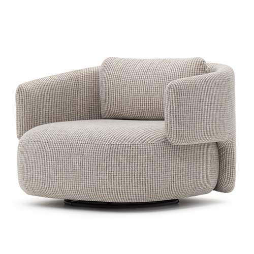 Assento e encosto estofados. Base giratória.
