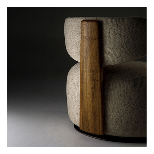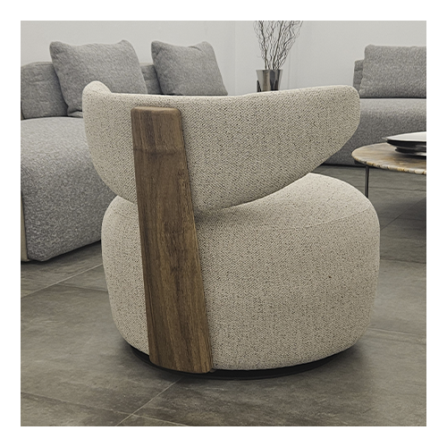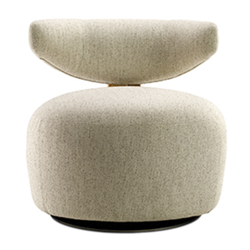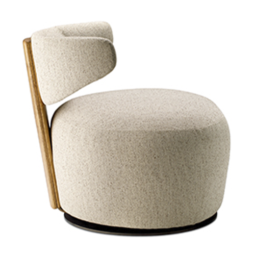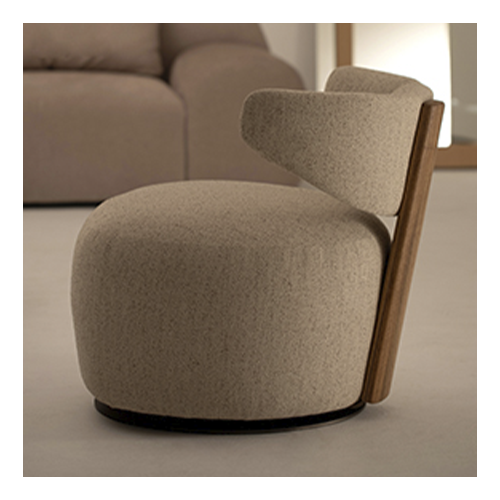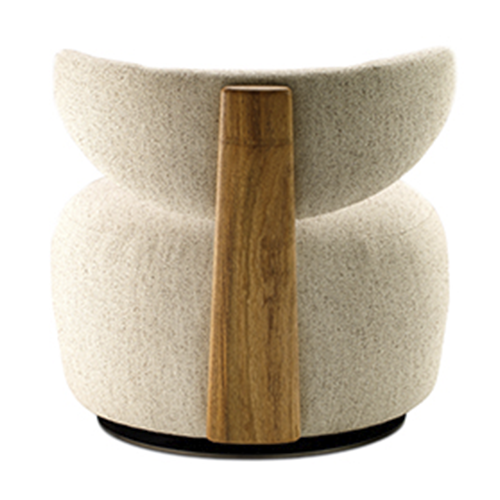 Poltrona giratória com base pintada. Estrutura e detalhe do encosto em madeira maciça.