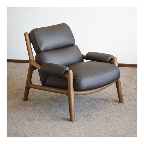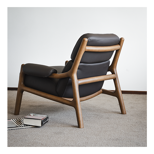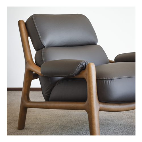 Poltrona Siesta – Estrutura em madeira Tauari Nogal. Assento e encosto revestidos em couro natural Matte Dark Brown. Medidas (cm) – Altura:82 / Largura: 80 / Profundidade: 85